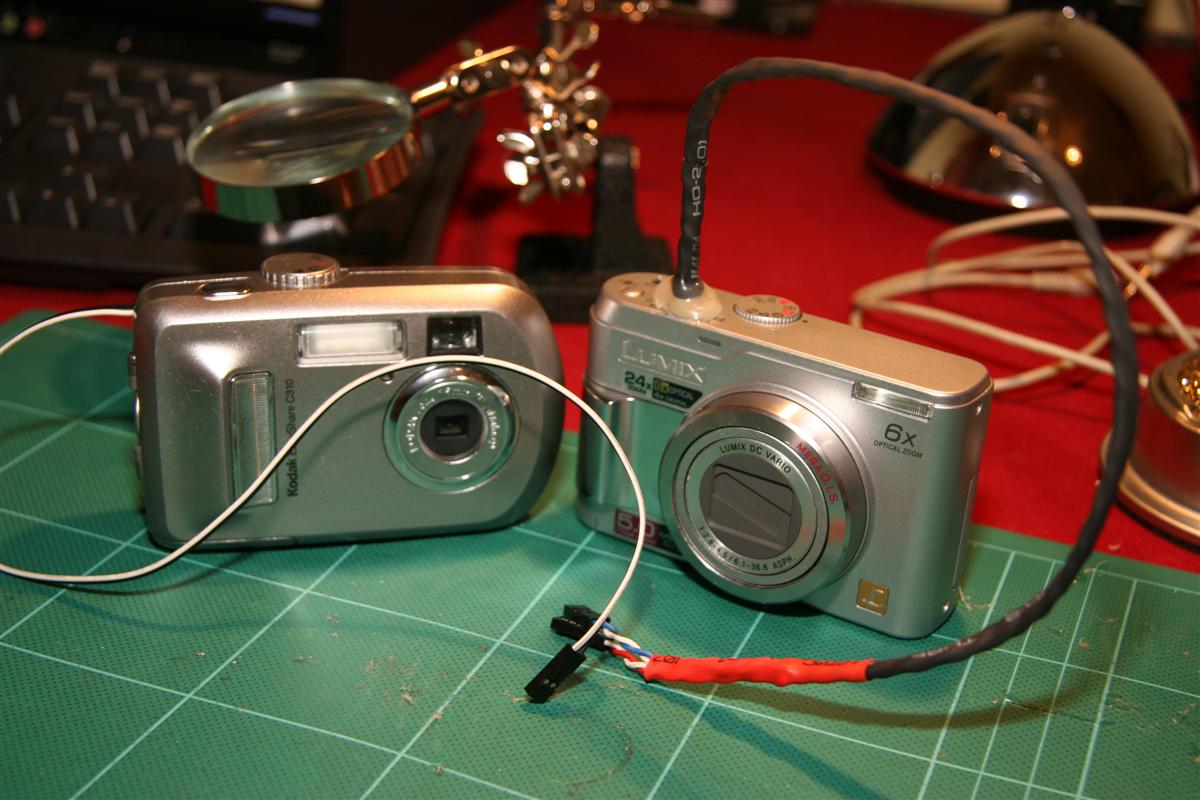 I had a chance to rig up the external trigger on the main camera (the Lumix) this weekend - it didn't go as smoothly as I'd hoped. This camera pretty much kicked my butt - it's usually a good idea to safely discharge the flash capacitor before working inside a camera. Usually you'd do this with a resistor - alternatively, you could forget to do so and accidentally shock yourself half a dozen times. Eventually I de-soldered the capacitor to save myself further pain.