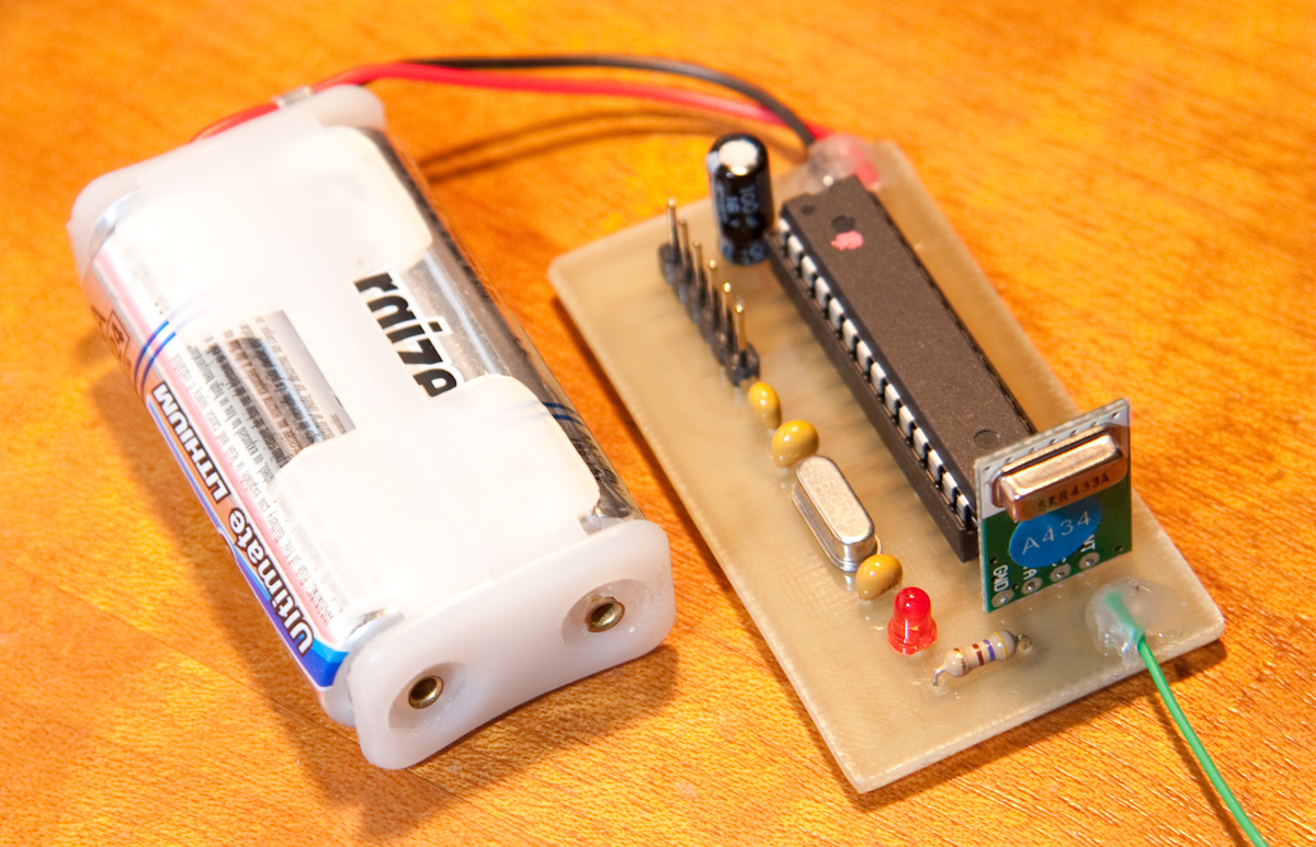 Running on 2AA lithium batteries, run time should be close to a week when constantly transmitting, more if the duty cycle is lowered a bit.