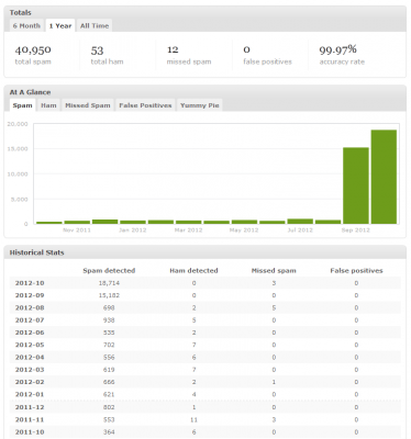 Like all blogs, projecthorus.org sees its share of spam. For the most part, this is kept in check by comment filters like Akismet - the last couple of months have been a bit of an exception though: