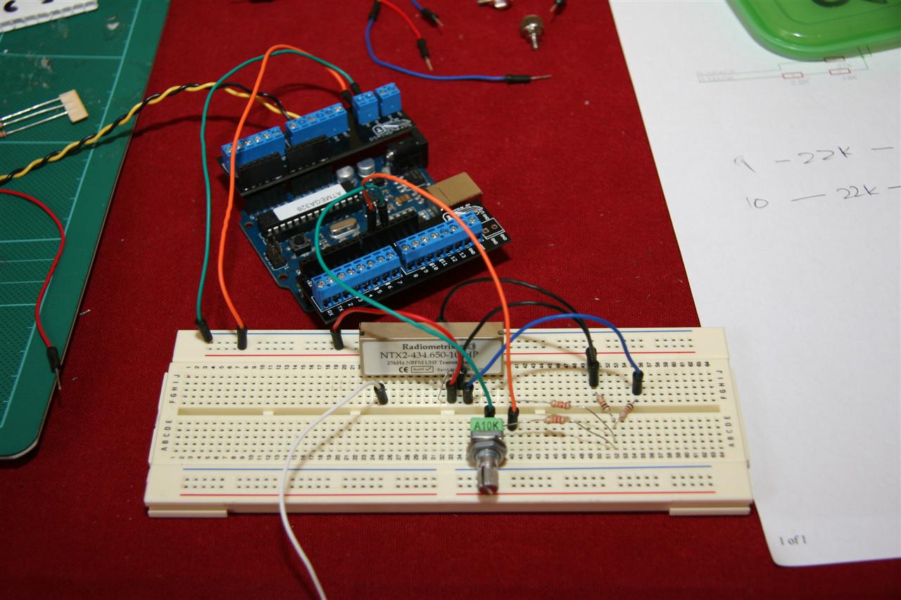 I had a mess around with the NTX2 & potential dividers, & after much tweaking came up with a solution that worked. Testing code on the other hand was problematic - eventually with some help from fergusnoble over at #highaltitude on freenode, I realised that the delayMicroSeconds() call wasn't working with a value as large as 20,000 (20ms = 1/50th sec) - a few adjustments later, and transmission was working perfectly, so I built up the module on a board.В So far I haven't tested with any antennas, but it seems to cover the distance across the room just fine.
