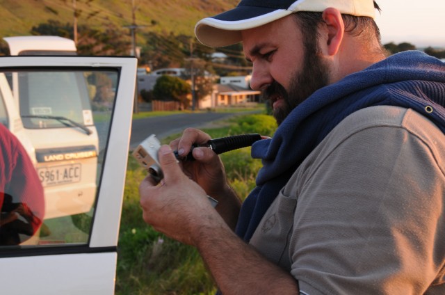 The rest of the chase teams started pulling apart the payloads and irrigating all the electronics to displace as much sea water as possible - air compressors in 4WD's certainly helped in this regard! Mark's HF payload was quite well sealed and did not suffer a great deal of water ingress - though still enough to cause some corrosion. However, the main payload containing the video did not fare so well - the hole the lens stuck out of allowed water in, which also resulted in the payload being dragged under water on it's way back to shore. The flight computer was very corroded, to the extent that some tracks were entirely eaten away.